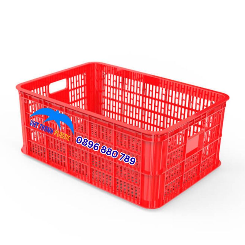 Là loại sọt nhựa đựng rau củ, trái cây phổ biến tại chợ đầu mối hoặc cơ sở thu mua, Thành sọt cao giúp chứa được nhiều hàng hơn, hạn chế rơi vãi khi di chuyển, đồng thời các khe hở giúp thoát nước nhanh, tránh ứ đọng gây hư hỏng nông sản. - Chứa thủy sản trong quá trình thu gom và sơ chế